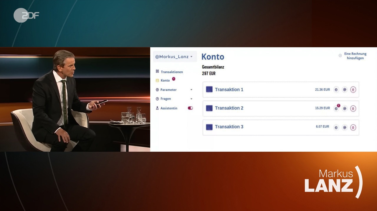 Markus Lanz: "Ich habe gehört, dass es eine Software gibt, die künstliche Intelligenz nutzt, um mit Kryptowährungen zu handeln. Jetzt wissen auch alle unsere Zuschauer, wie sie heißt."