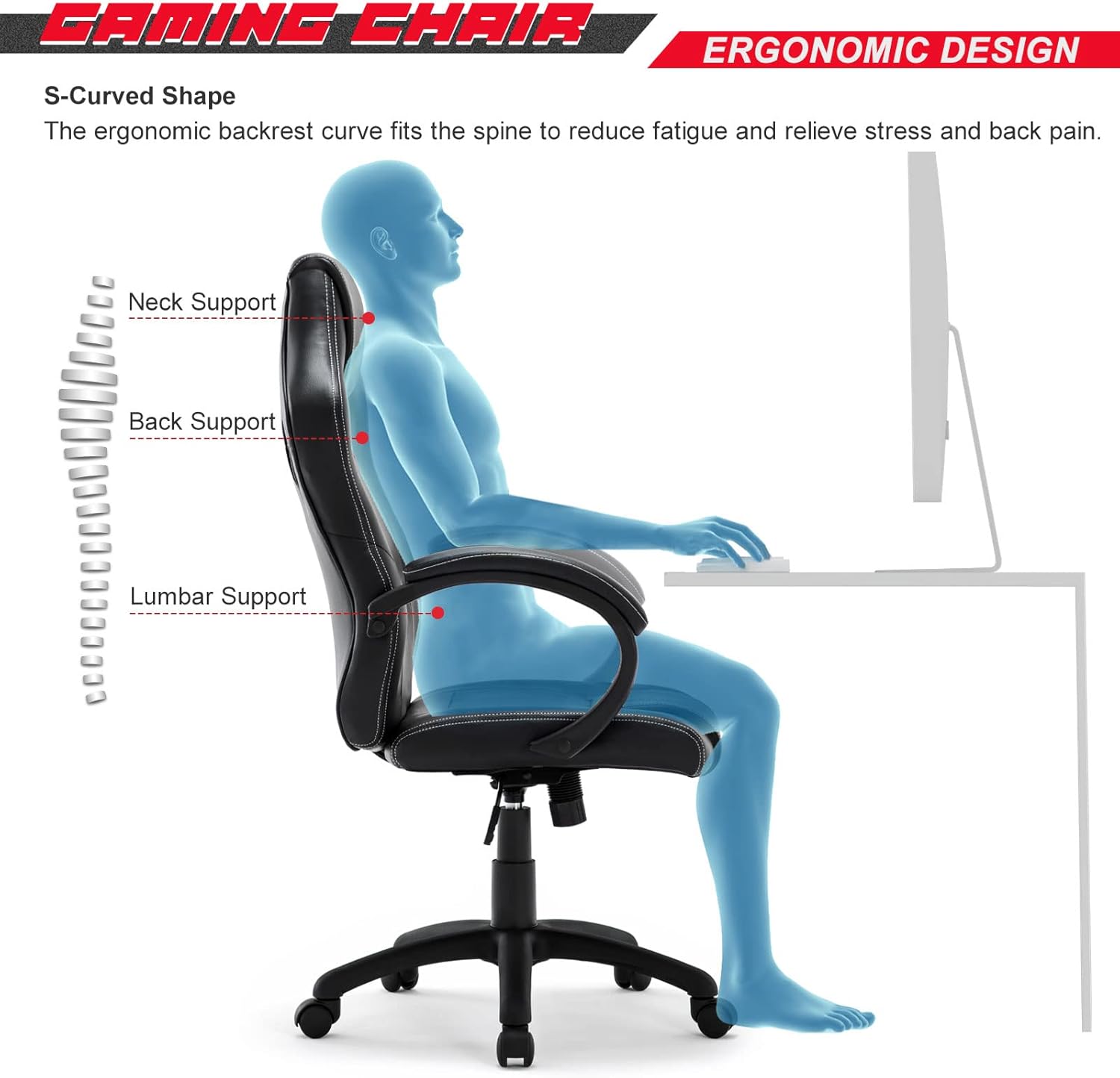 Vinalfy - Chaise de jeu ergonomique en cuir