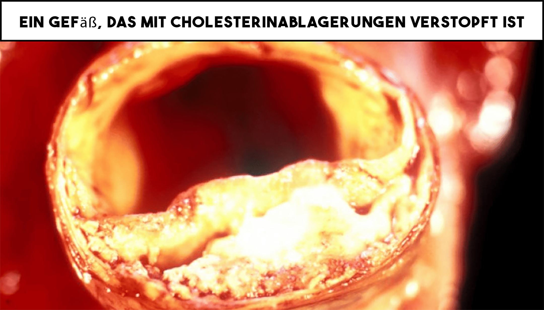 Echtes Foto eines Gefäßes, das bei Diabetes mellitus zur Bildung von Cholesterinablagerungen neigtDas Zuckern der Blutgefäße und inneren Organe!