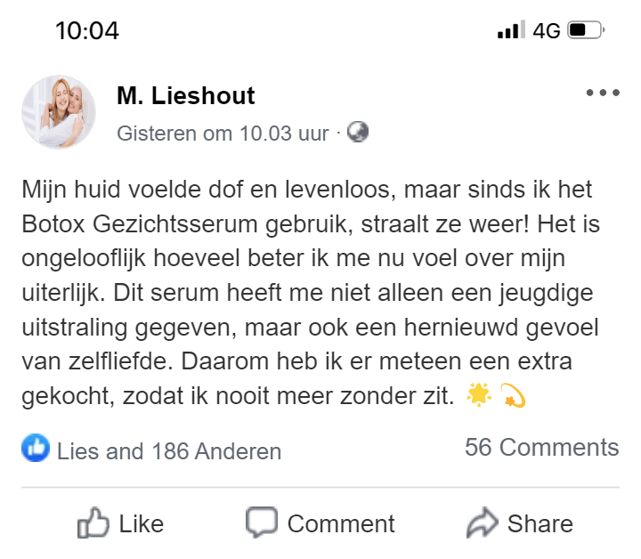 Es glättet Falten und feine Linien und ermöglicht es Ihnen, Ihr Leben wieder in vollen Zügen zu genießen.