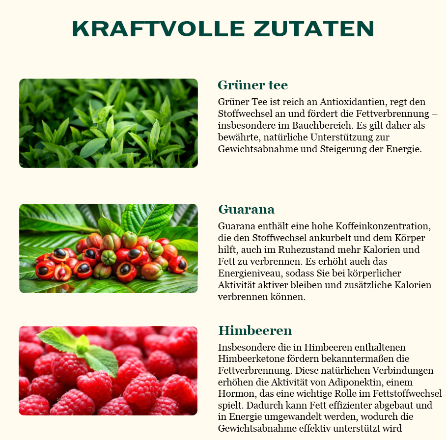 Ich habe Shapemed zum ersten Mal über ein Online-Forum entdeckt, in dem Benutzer seine leistungsstarken Inhaltsstoffe wie Grüntee-, Guarana- und Himbeerextrakte lobten, die für ihre stoffwechselanregenden und fettverbrennenden Eigenschaften bekannt sind.