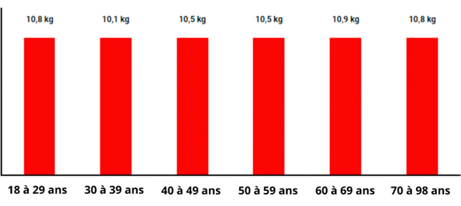Perte de poids moyenne par âge sur une période de 2 semaines :