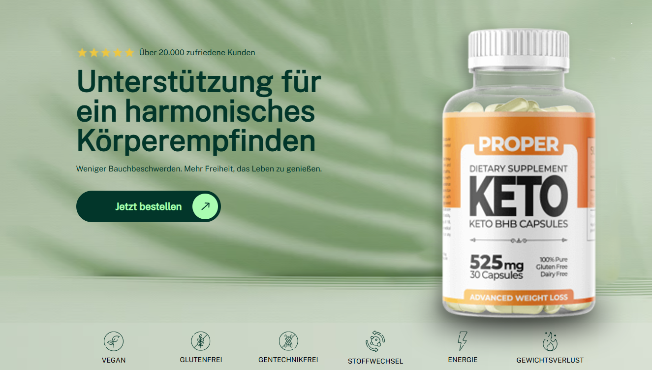 - Der Wirkstoff von Proper Keto BHB Capsules wird durch die spezielle Formel von der Magenschleimhaut sofort aufgenommen
