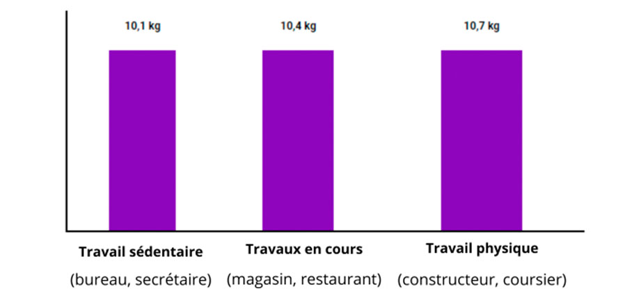 Perte de poids moyenne pour chaque profession sur une période de 2 semaines :