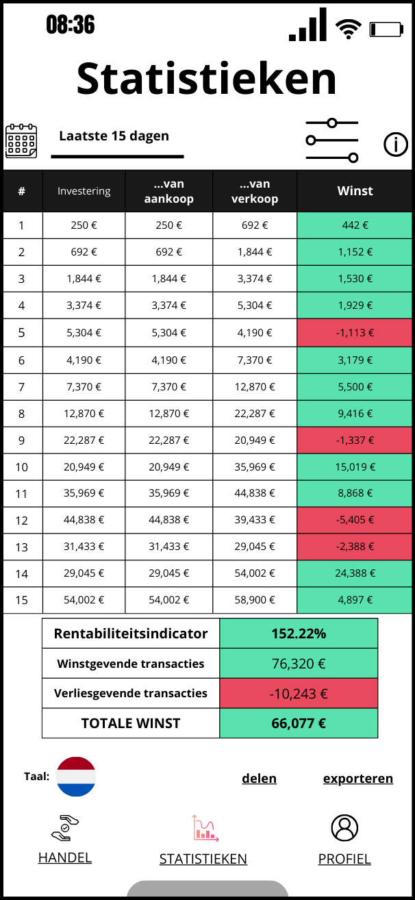 The application has been opened for several months to a small circle of people who gained access when registrations were first opened 6 months ago. Public statistics show that the average revenue per user was just over 14,700 € per month, but this depends mainly on the size of the investment and the development of the algorithm, which, according to the founders, is improving day by day and currently achieves a precision of 92%.