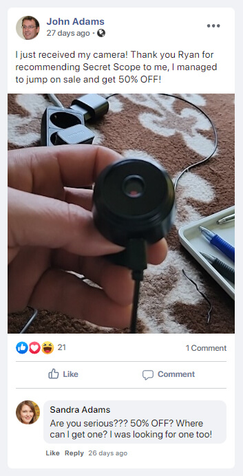 Click here to claim your discounted Secret Scope Camera (if it’s still available).